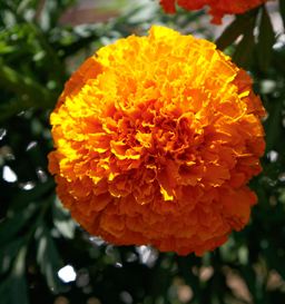 | Flower: | Shinning Orange, very attractive, larger in size, no center disc, double petals with fringed petals, larger in size. |