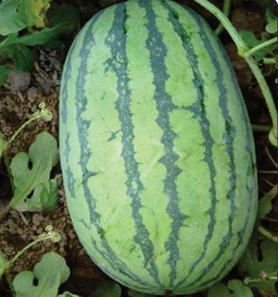 | Fruit character: | Shape oblong, skin light green with dark green stripes, flesh red in colour. |